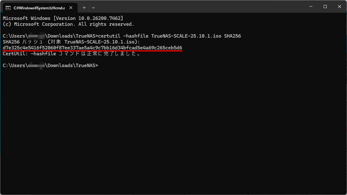 certutil -hashfile TrueNAS-SCALE-25.10.1.iso sha256