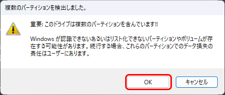 ムが存在する可能性があります。続行する場合、これらのパーティションでの