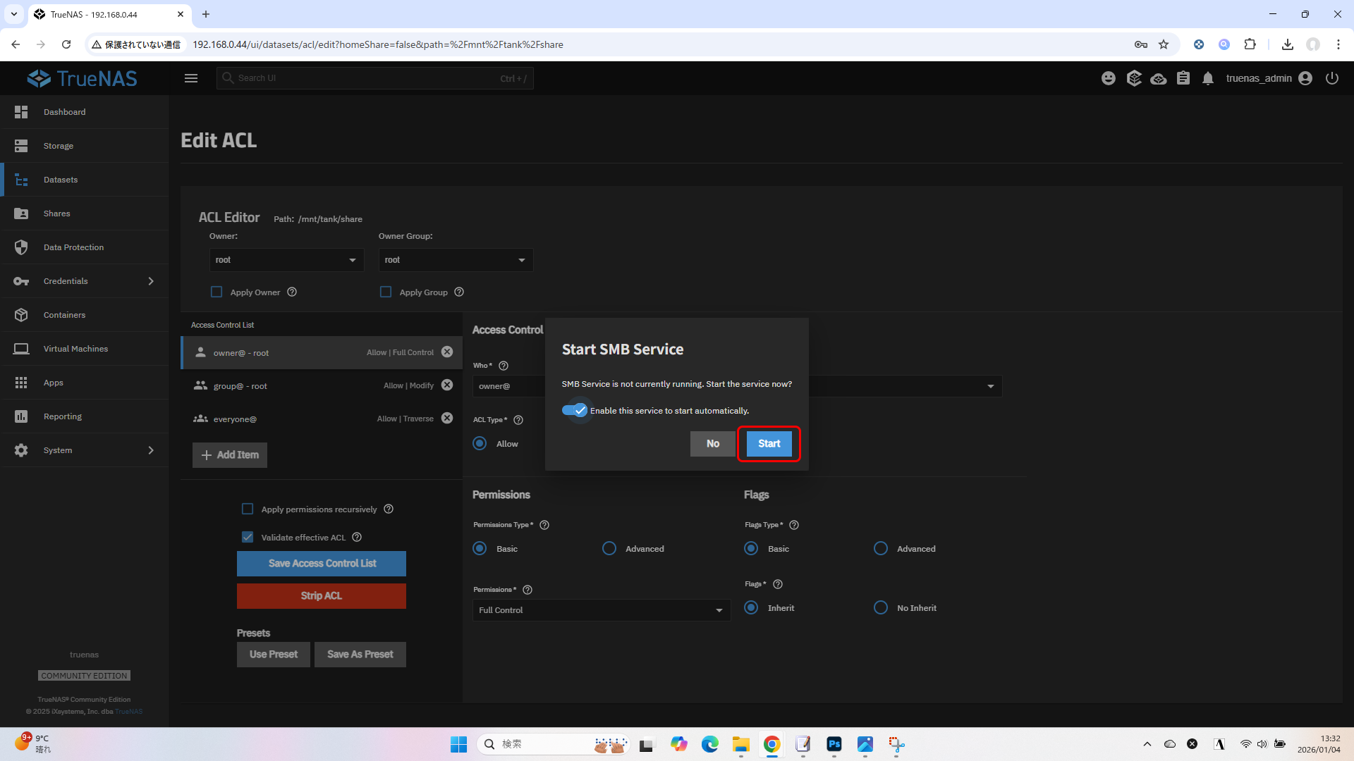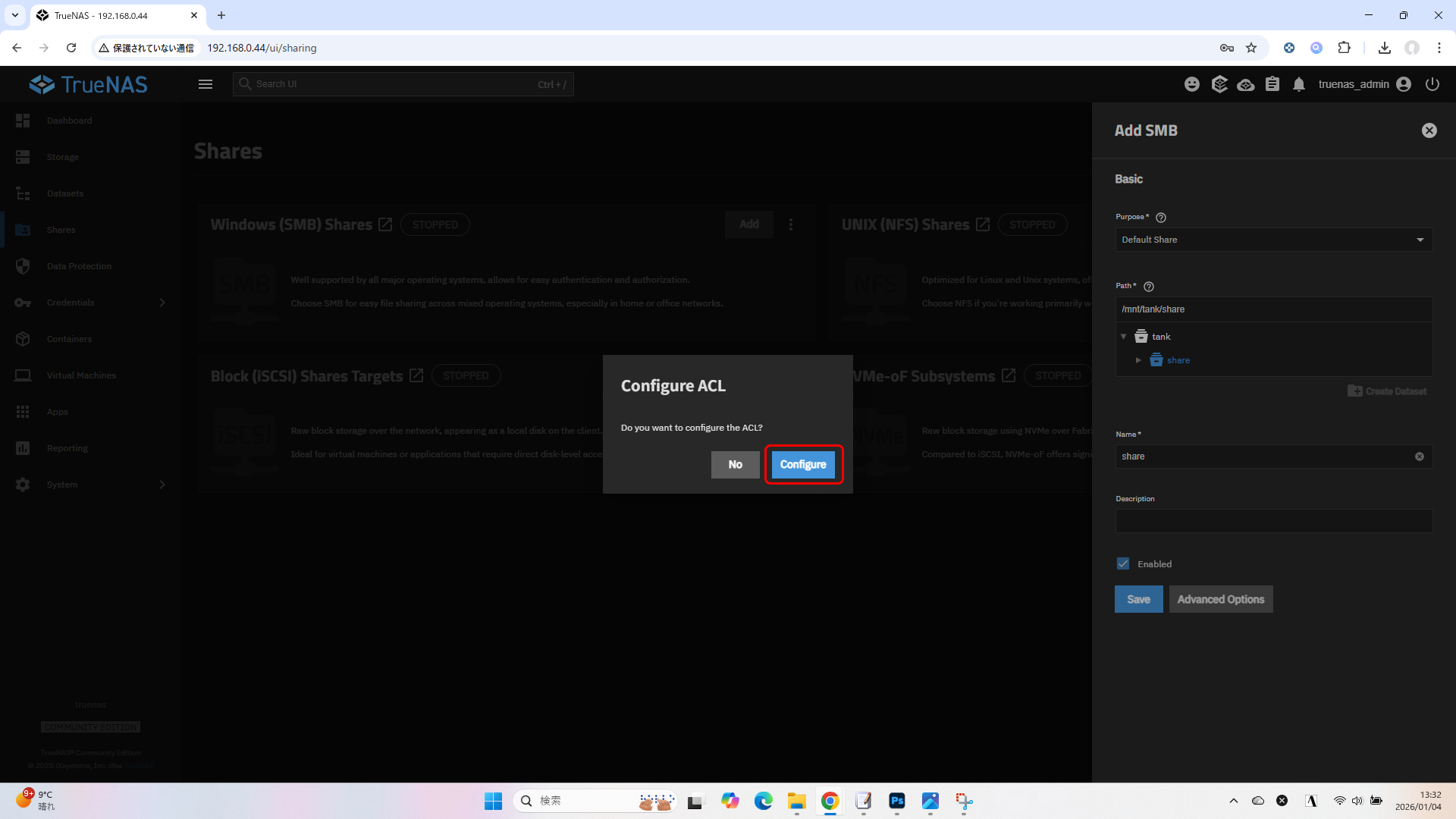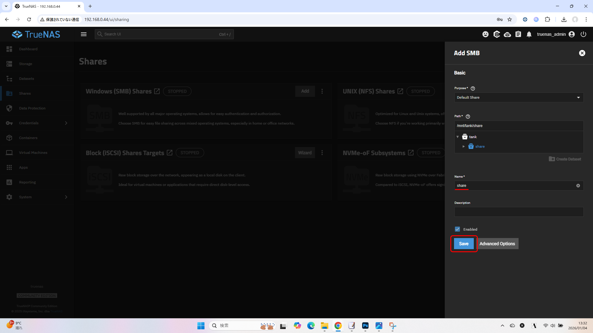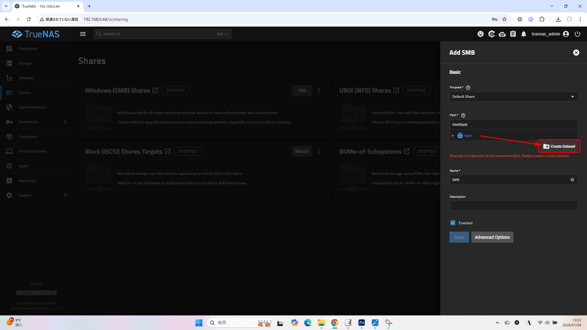 ただここの設定の話を始めると TrueNAS だけの話じゃなくなるし長くなるので割愛。