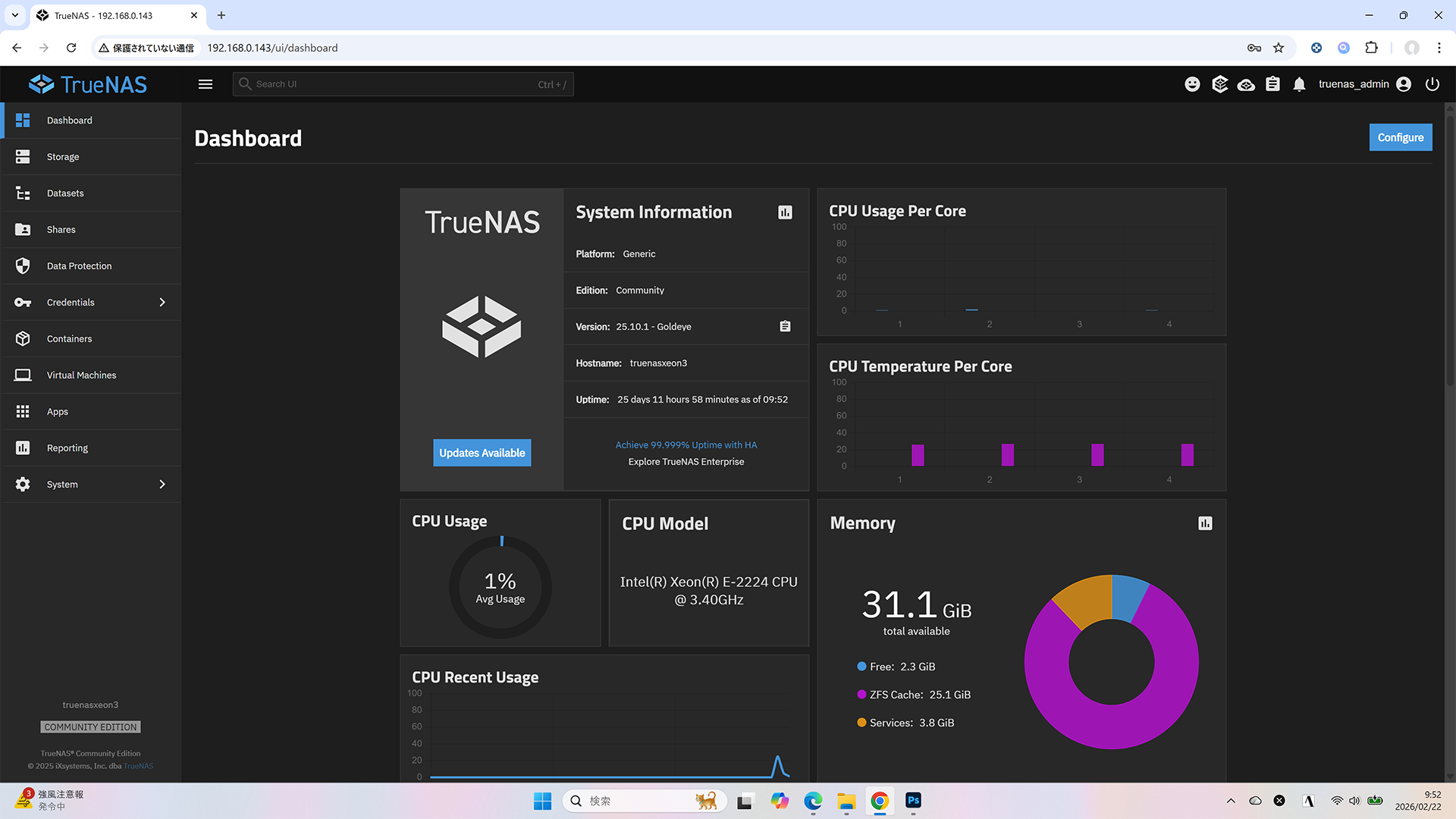 TrueNAS 25.10.2 (Goldeye)が提供されはじめました。