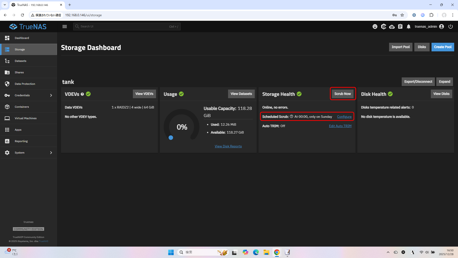 現時点でTrueNAS 12.0に挑んでいる人はチャレンジャーと言ってもいいと思います。